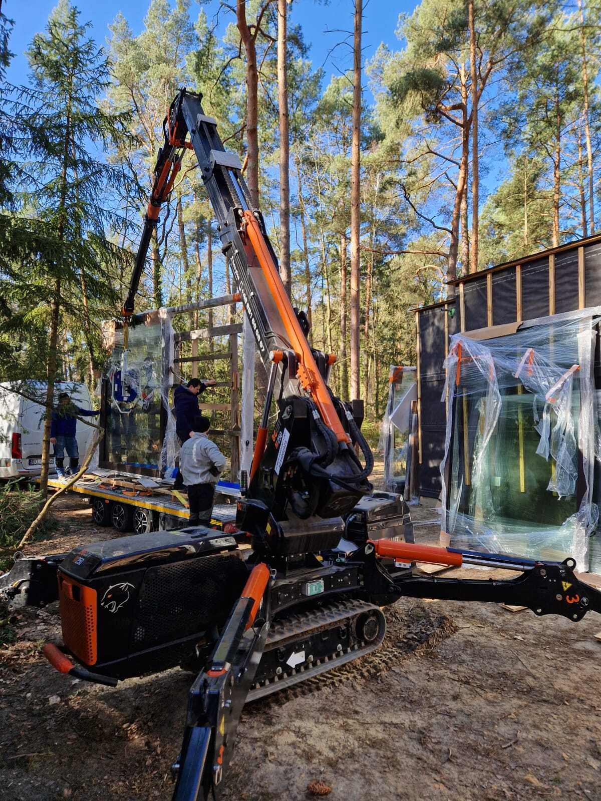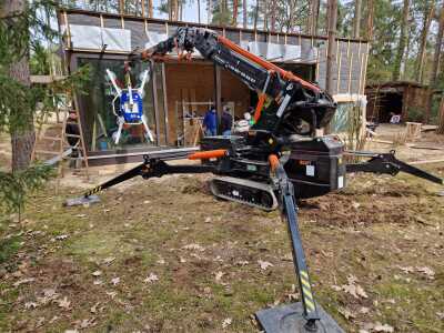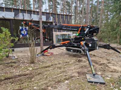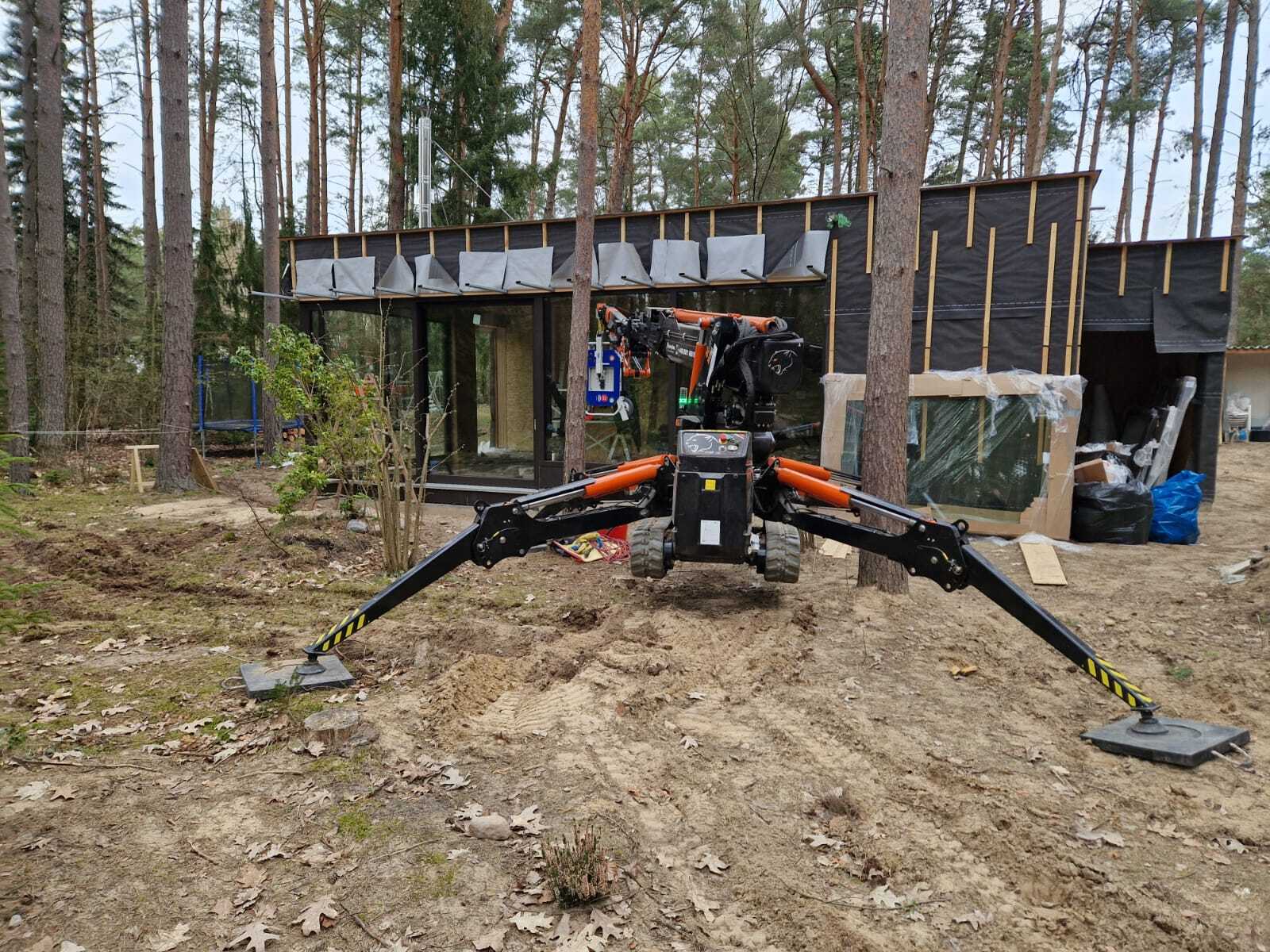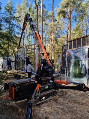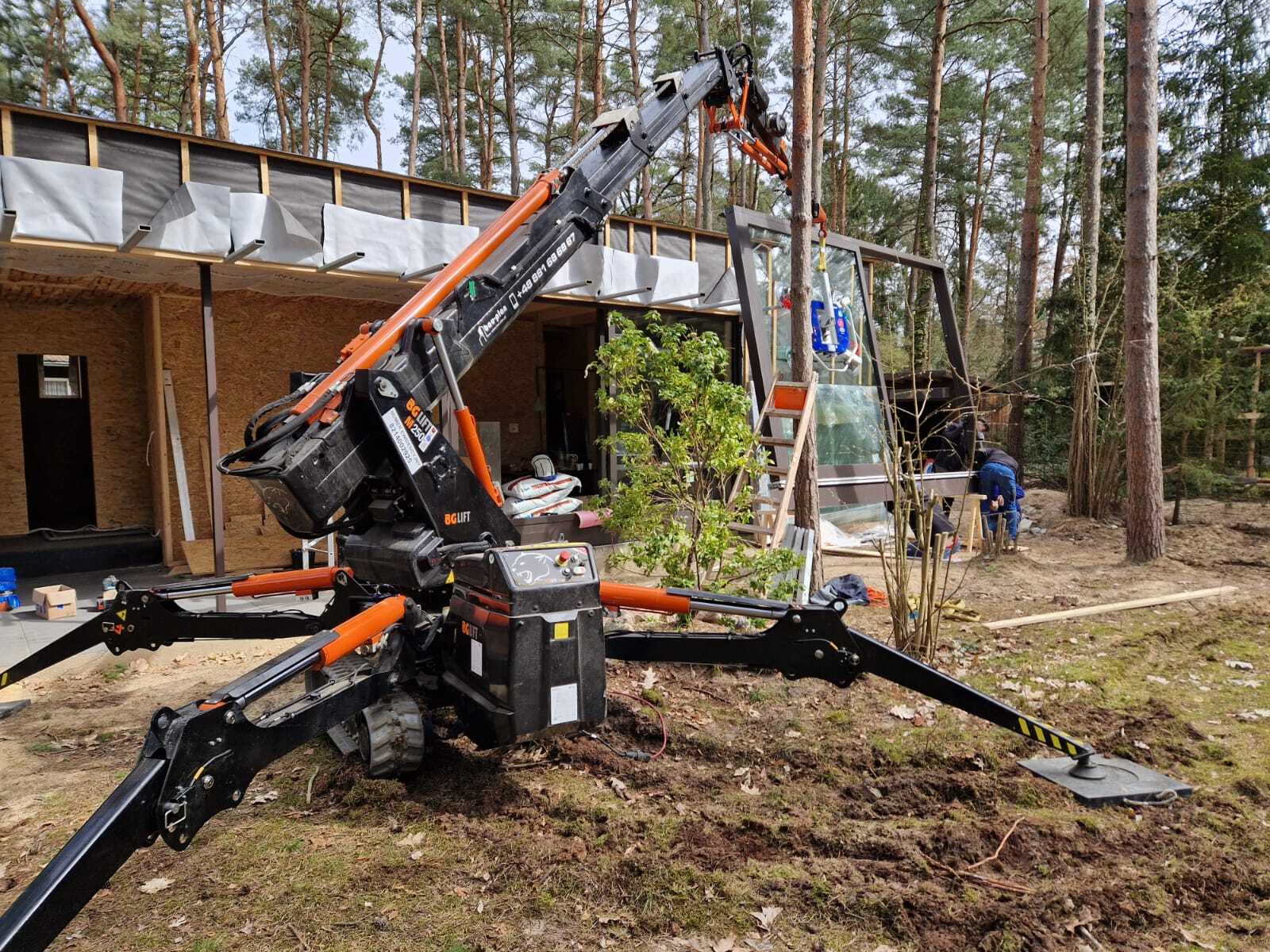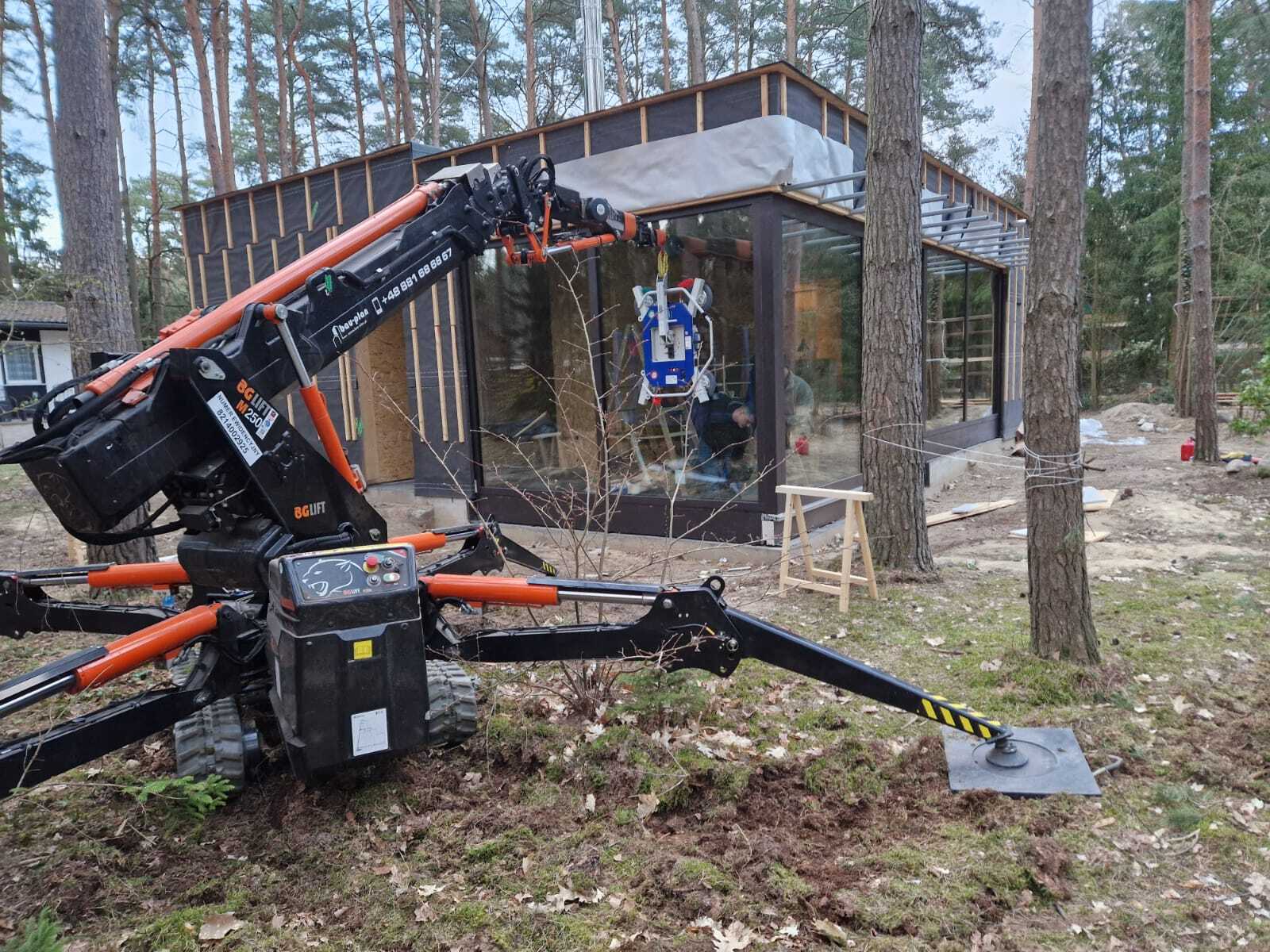 Szklenie okien z wykorzystaniem mini żurawia BG Lift M250 w miejscowości Wandlitz. Oferujemy wynajem mini żurawia z doświadczonym operatorem do prac montażowych, transportowych lub instalacyjnych. / Die Verglasung der Fenster mithilfe Minikran BG Lift M250 in Wandlitz. Wir bieten die Vermietung von Minikran mit einem erfahrenen Kranfahrer für Montage-, Transport- oder Installationsarbeiten an.